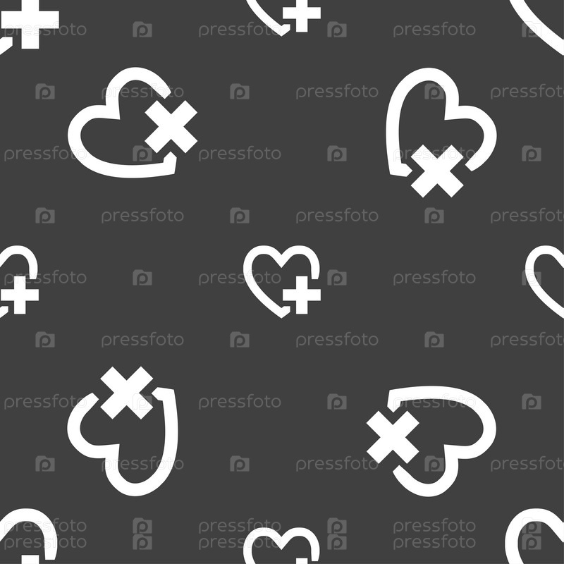Сердце. Бесшовный узор на сером фоне. Вектор