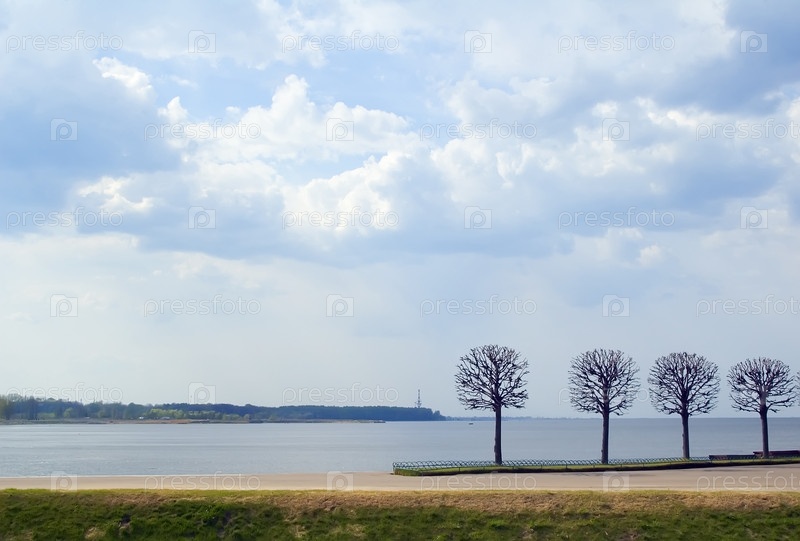 Вид из парка в Петергофе на Финском заливе