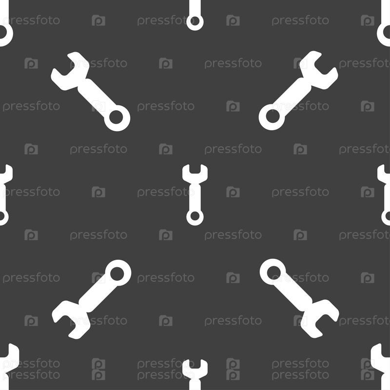 Ключевым признаком значок гаечного ключа. Значок службы инструмента. Бесшовный узор на сером фоне. Вектор