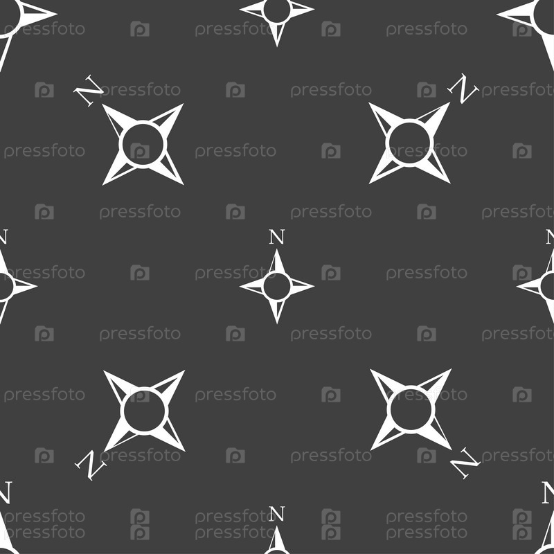 Иконка Компас знак. навигации символ. Бесшовный узор на сером фоне. Вектор
