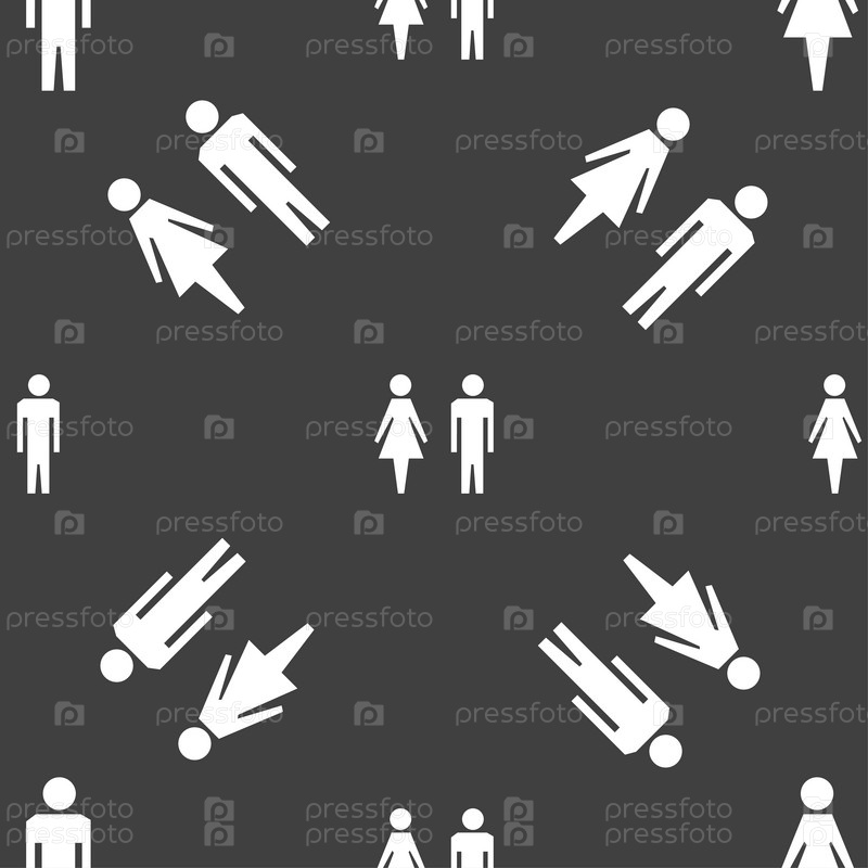 Знак значка. Символ туалета. Мужской и женский туалет. Бесшовный рисунок на сером фоне. Вектор WC