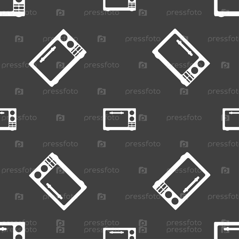 Микроволновая печь знак значок. Электрическая плита символ. Бесшовный узор на сером фоне. Вектор