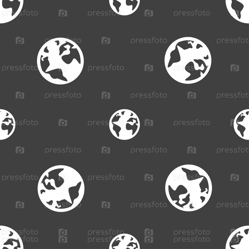 Глобус знак значок. Символ географии карта мира. Глобус на стенде для изучения. Бесшовный узор на сером фоне. Вектор
