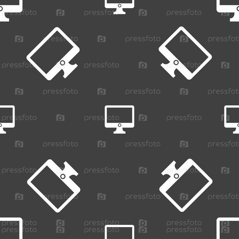 Знак значок компьютер широкоформатный монитор. Бесшовный узор на сером фоне. Вектор