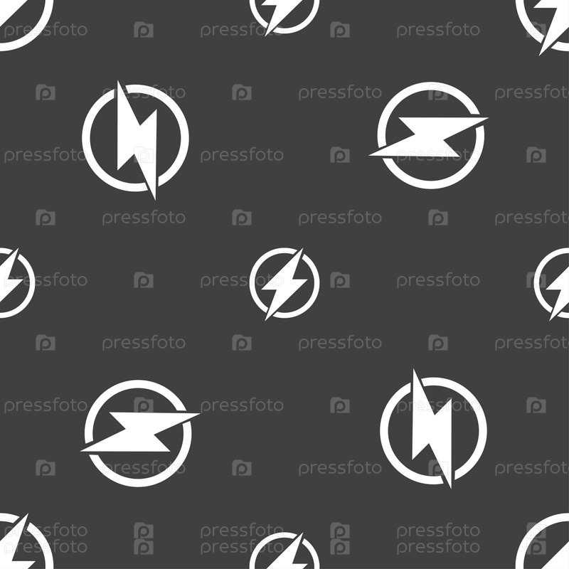 Значок вспышки знак фото. Символ молния. Бесшовный узор на сером фоне. Вектор