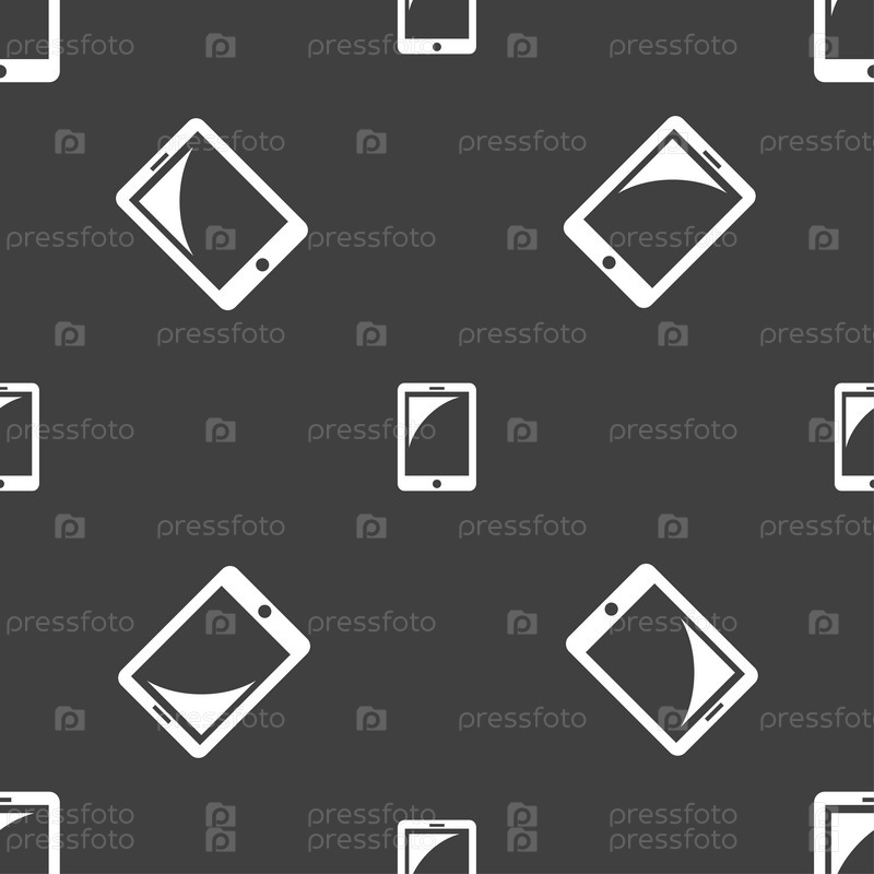 Иконка-планшета знак. смартфон кнопка. Бесшовный узор на сером фоне. Вектор