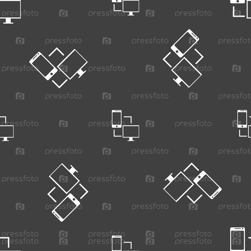 Знак значок синхронизации. коммуникаторы синхронизации символ. Обмен данными. Бесшовный узор на сером фоне. Вектор