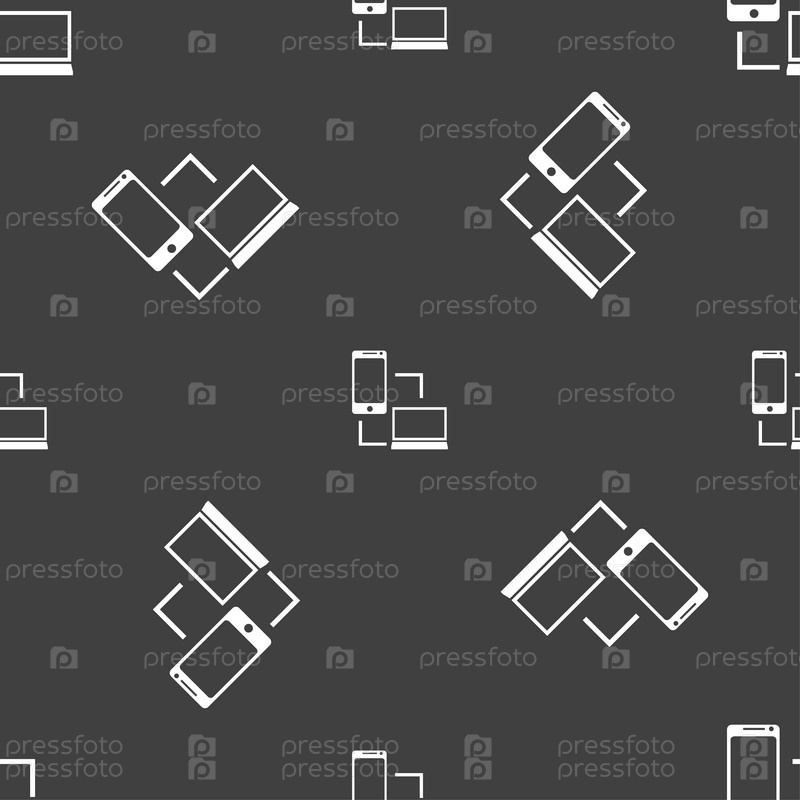 Знак значок синхронизации. коммуникаторы синхронизации символ. Обмен данными. Бесшовный узор на сером фоне. Вектор