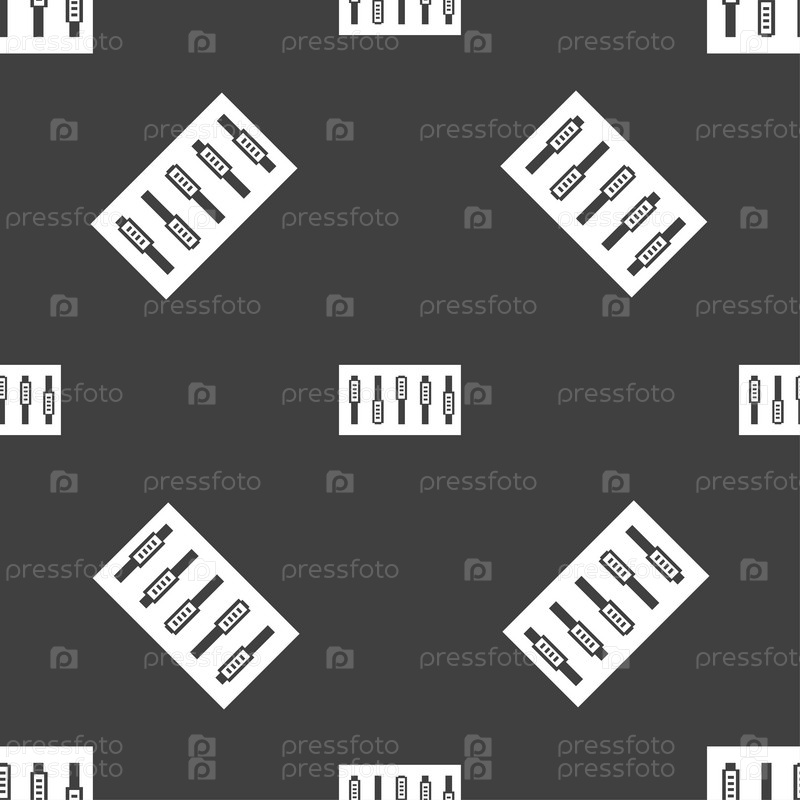 Диджей-консоли микс ручки и кнопки значок символа Бесшовный рисунок на сером фоне Вектор