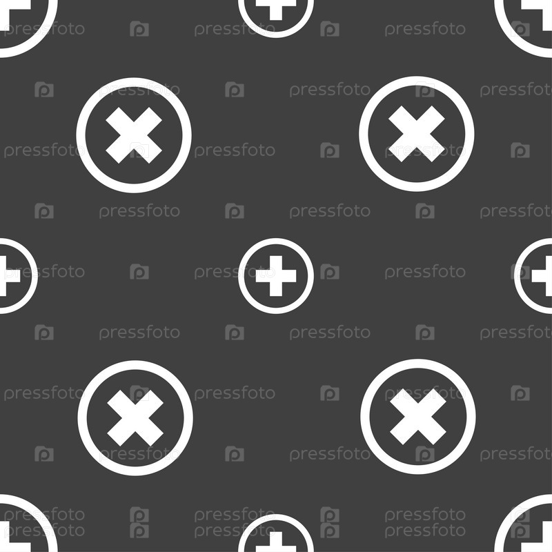 Знак плюс. Бесшовный узор на сером фоне. Вектор
