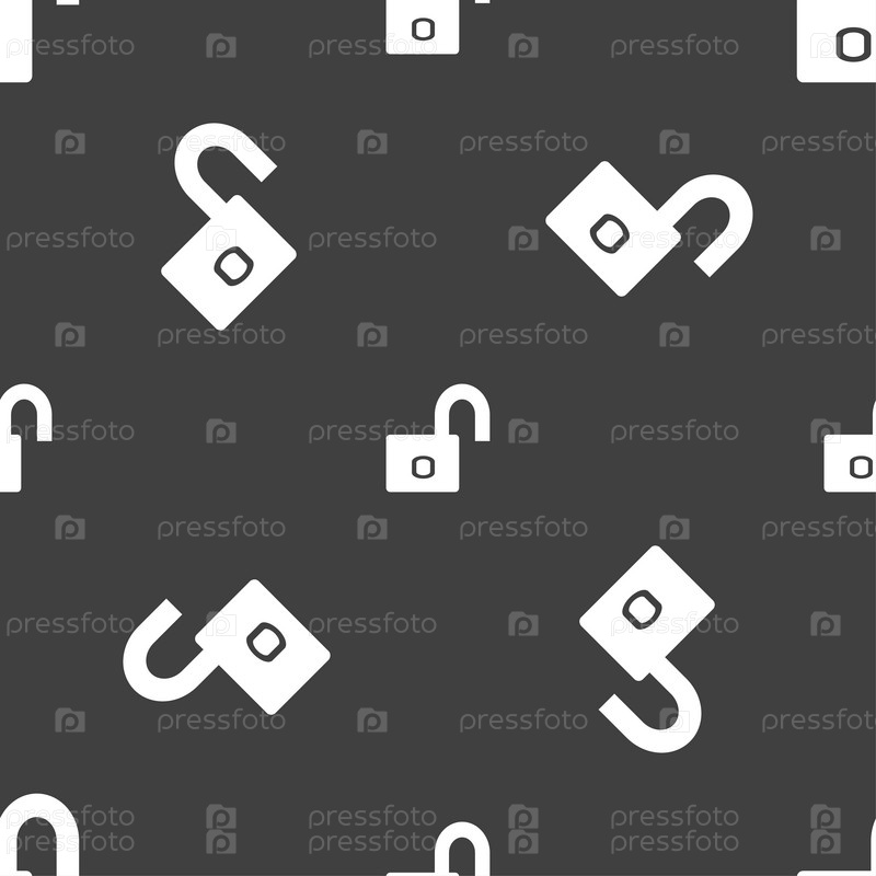 Значок замка. Бесшовный узор на сером фоне. Вектор