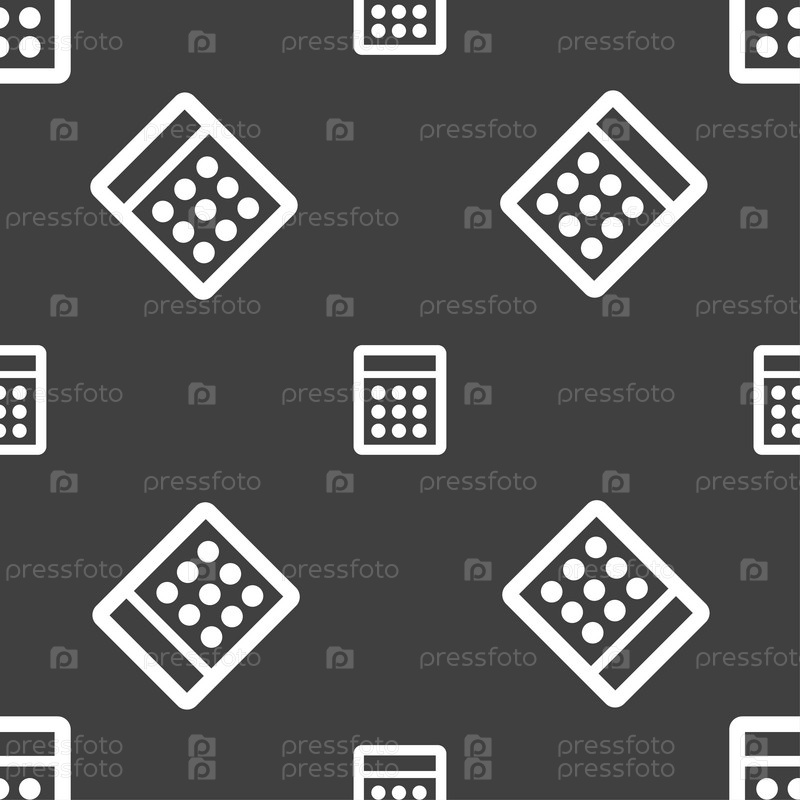 Иконка Калькулятор. Бесшовный узор на сером фоне. Вектор