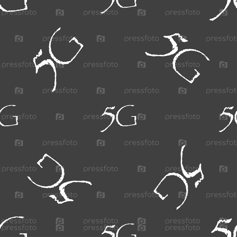 Знак значка 5G. Символ технологии мобильной связи. Бесшовный узор на сером фоне. Вектор