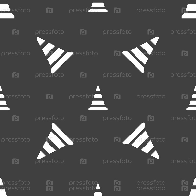 Значок конуса дороги. Бесшовный узор на сером фоне. Вектор