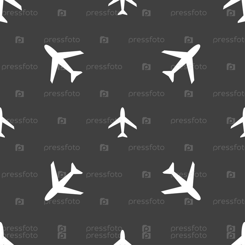 Самолет. Бесшовный узор на сером фоне. Вектор