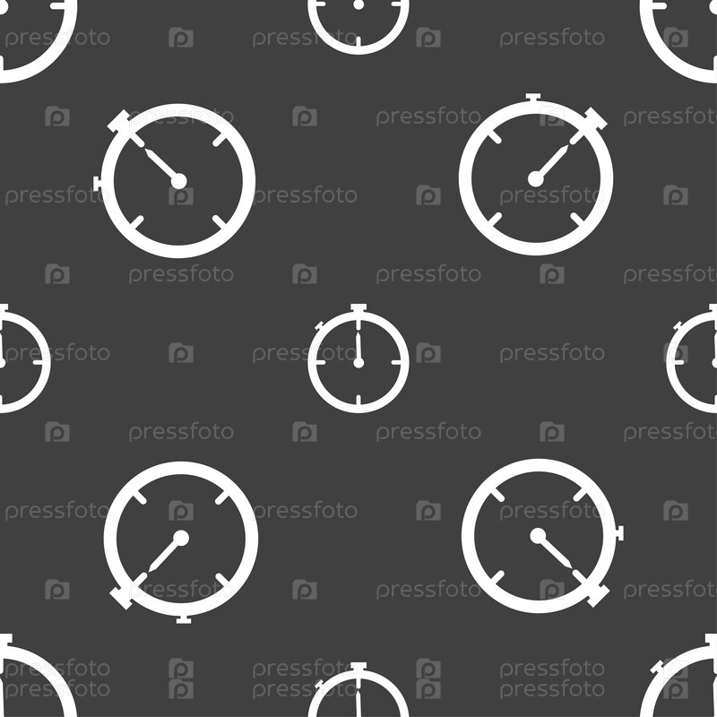 Изображение знака таймера. Секундомер символ. Бесшовный узор на сером фоне. Вектор