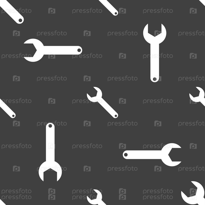 Ключевым признаком значок гаечного ключа. Значок службы инструмента. Бесшовный узор на сером фоне. Вектор