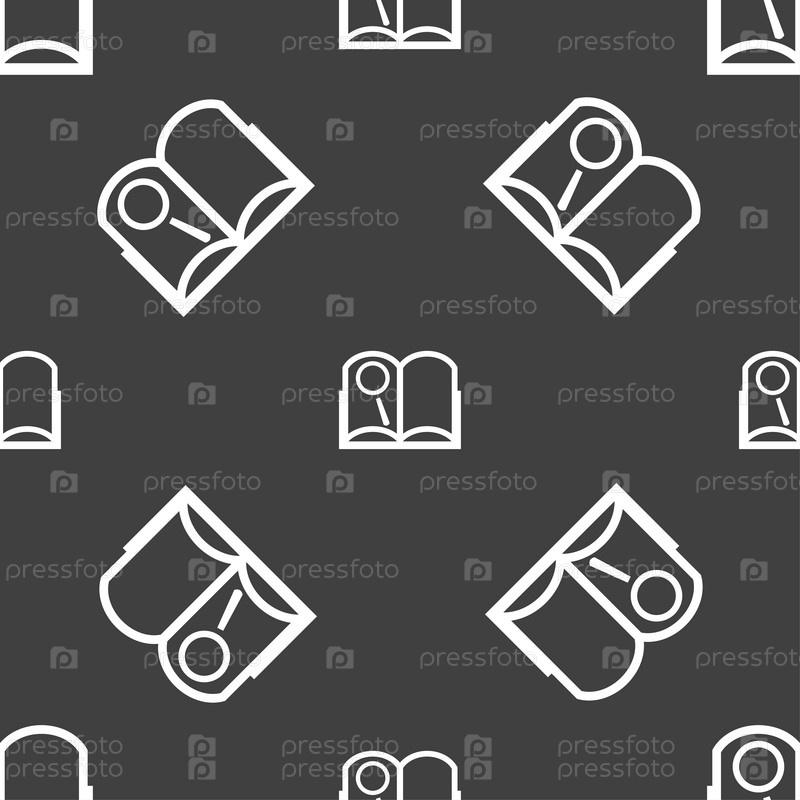Знак значок книги. Открытая книга символ. Бесшовный узор на сером фоне. Вектор