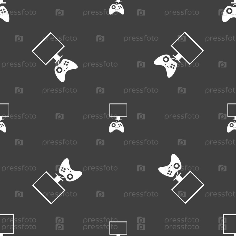 Джойстик и монитор. Бесшовный узор на сером фоне. Вектор