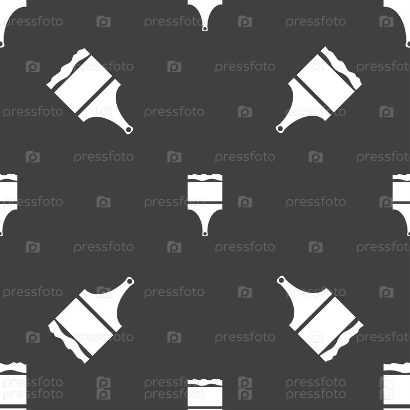 Краска кисти знак значок. Символ художник. Бесшовный узор на сером фоне. Вектор