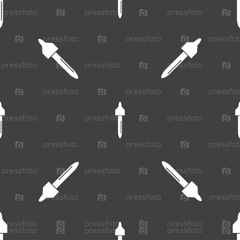 Знак значок пипетки. символ пипеткой. Бесшовный узор на сером фоне. Вектор