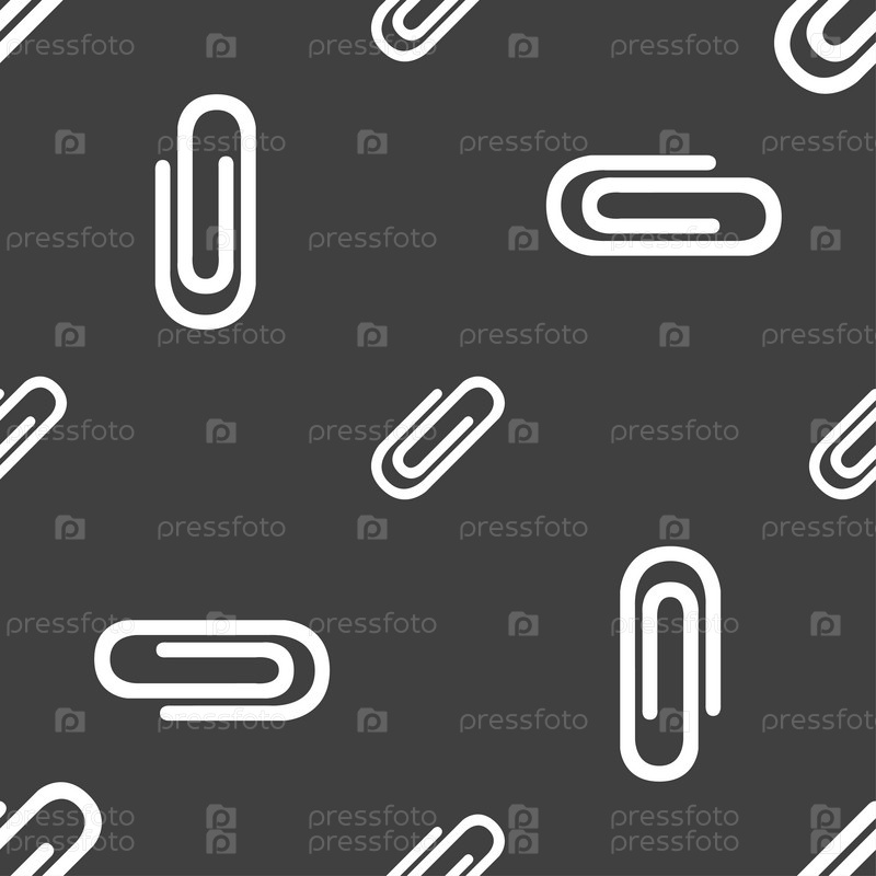 Знак значок скрепки. Символ фрагмента ролика. Бесшовный узор на сером фоне. Вектор