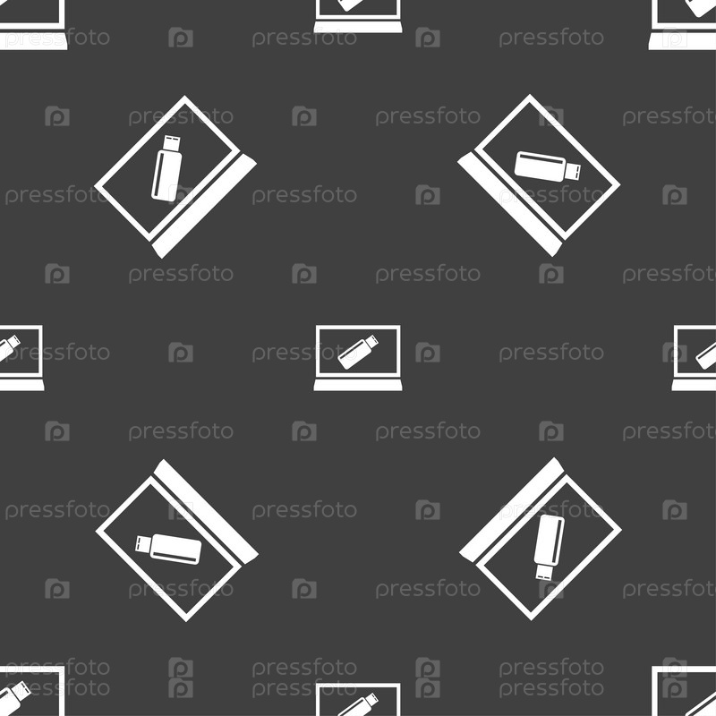 Флэш-накопитель. Бесшовный узор на сером фоне. Вектор