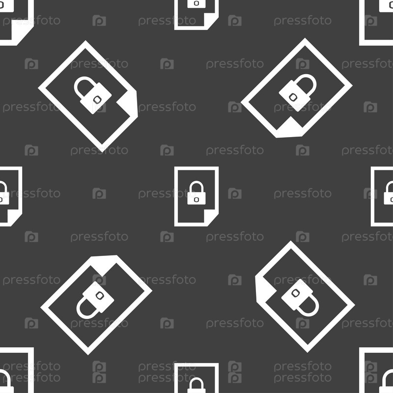 Файл заблокирован значок знак. Бесшовный узор на сером фоне. Вектор