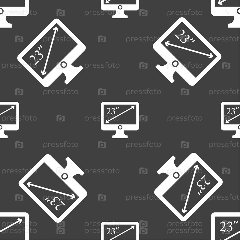 С диагональю 23 дюйма монитор значок знак. Бесшовный узор на сером фоне. Вектор