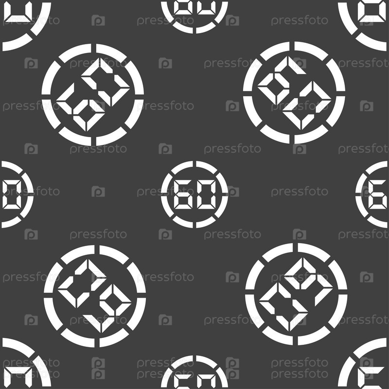 60 второй знак значок секундомера. Бесшовный узор на сером фоне. Вектор