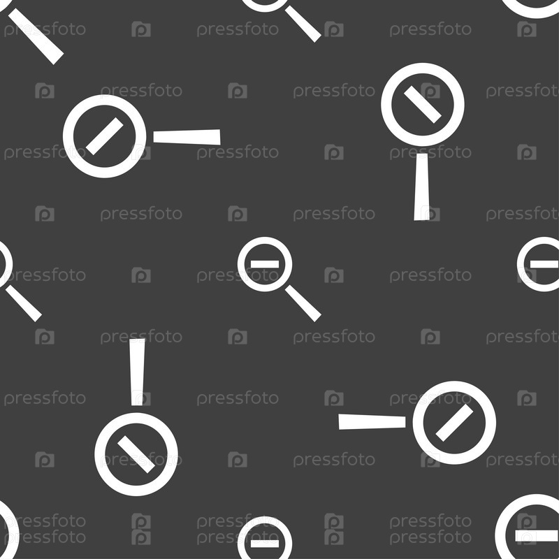 Лупа стекла, зум инструмент значок знак. Бесшовный узор на сером фоне. Вектор