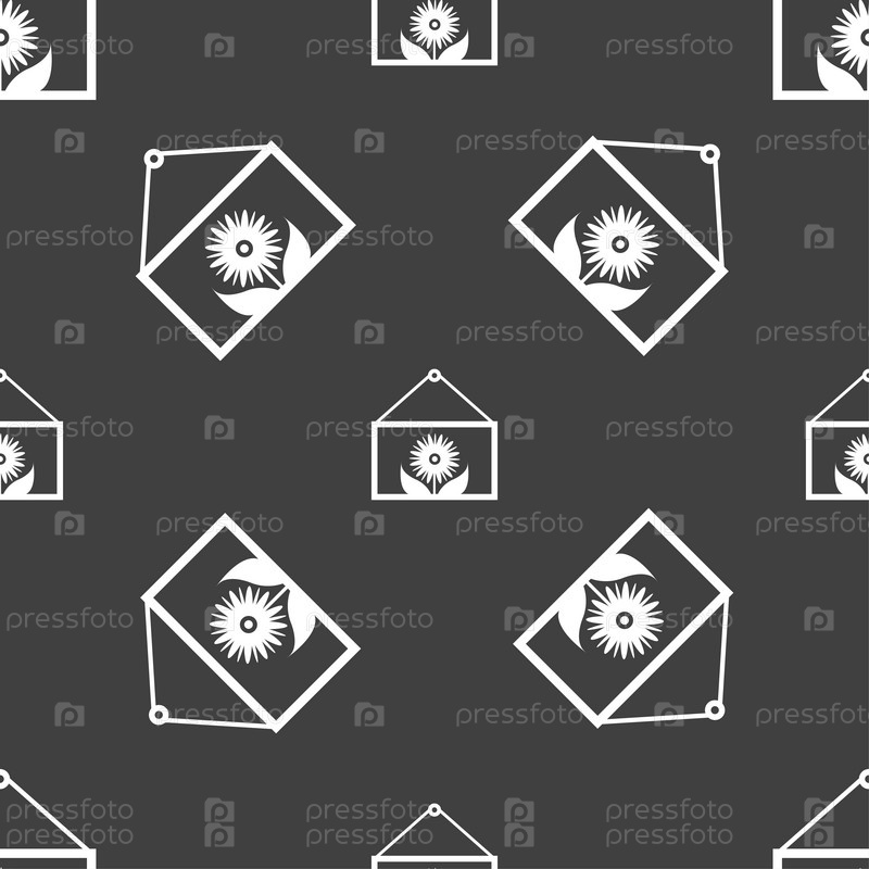 Рамка с цветок значок знак. Бесшовный узор на сером фоне. Вектор