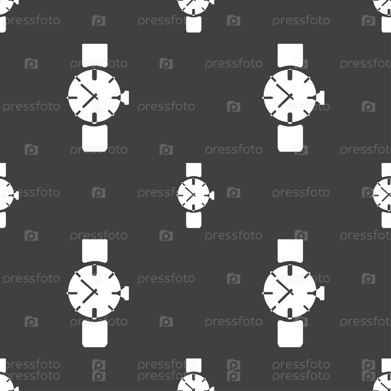 Часы значок символа. Бесшовный узор на сером фоне. Вектор