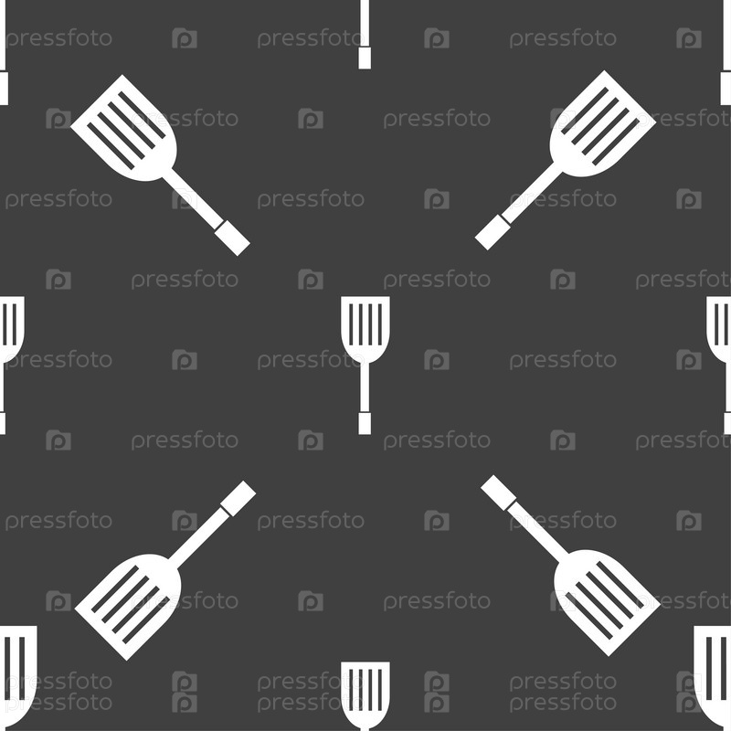 Кухонные приборы значок знак. Бесшовный узор на сером фоне. Вектор