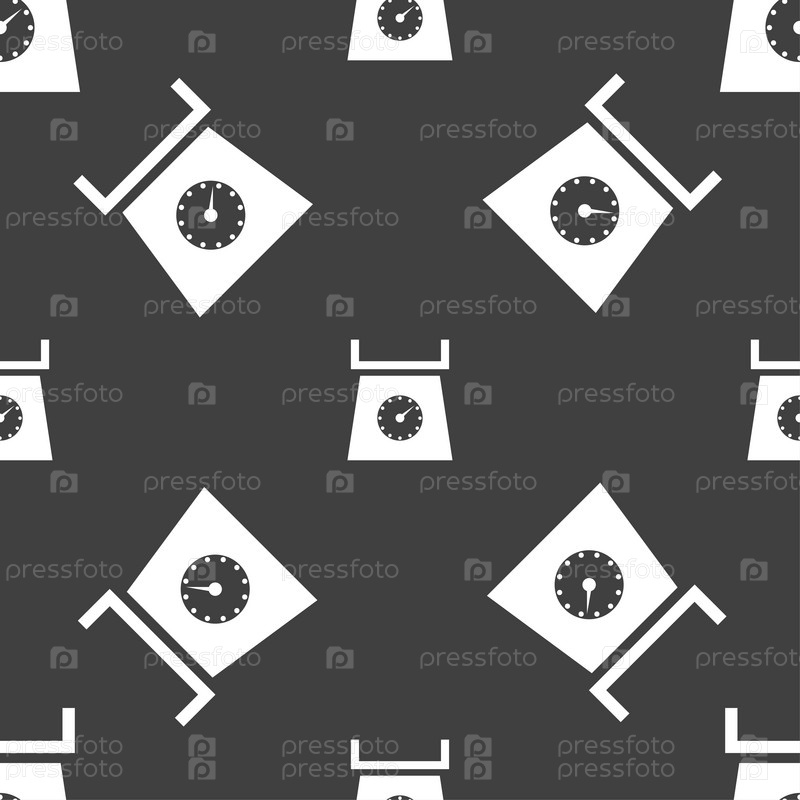 Кухонные весы знак значок. Бесшовный узор на сером фоне. Вектор