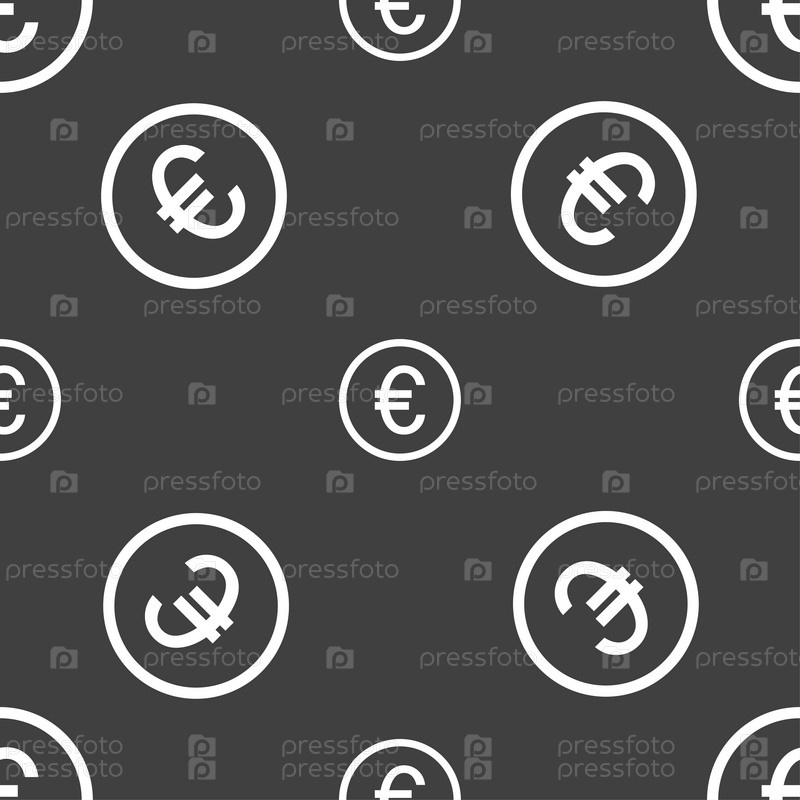 Значок знак евро. Бесшовный узор на сером фоне. Вектор