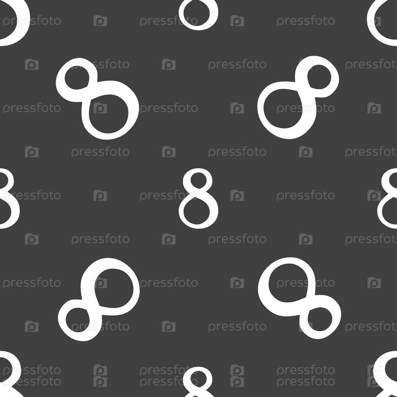 Номер восемь значок знак. Бесшовный узор на сером фоне. Вектор