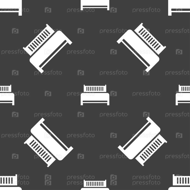 Отель, кровать. Бесшовный узор на сером фоне. Вектор