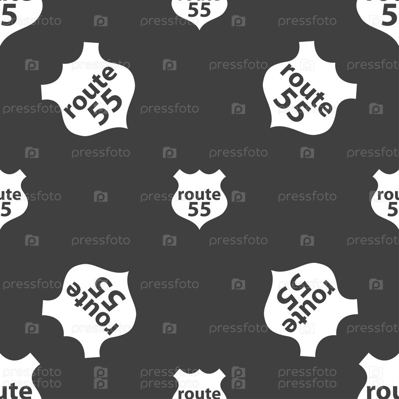 Маршрут 55 шоссе значок знак. Бесшовный узор на сером фоне. Вектор