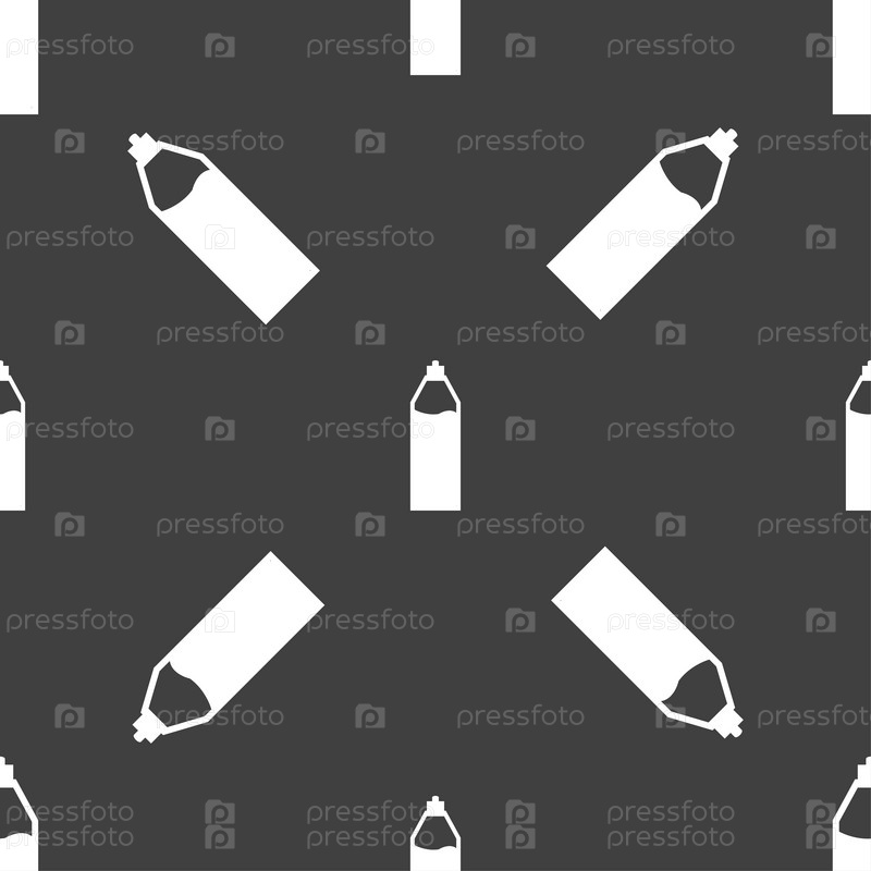 Пластиковая бутылка с напитком. Бесшовный узор на сером фоне. Вектор