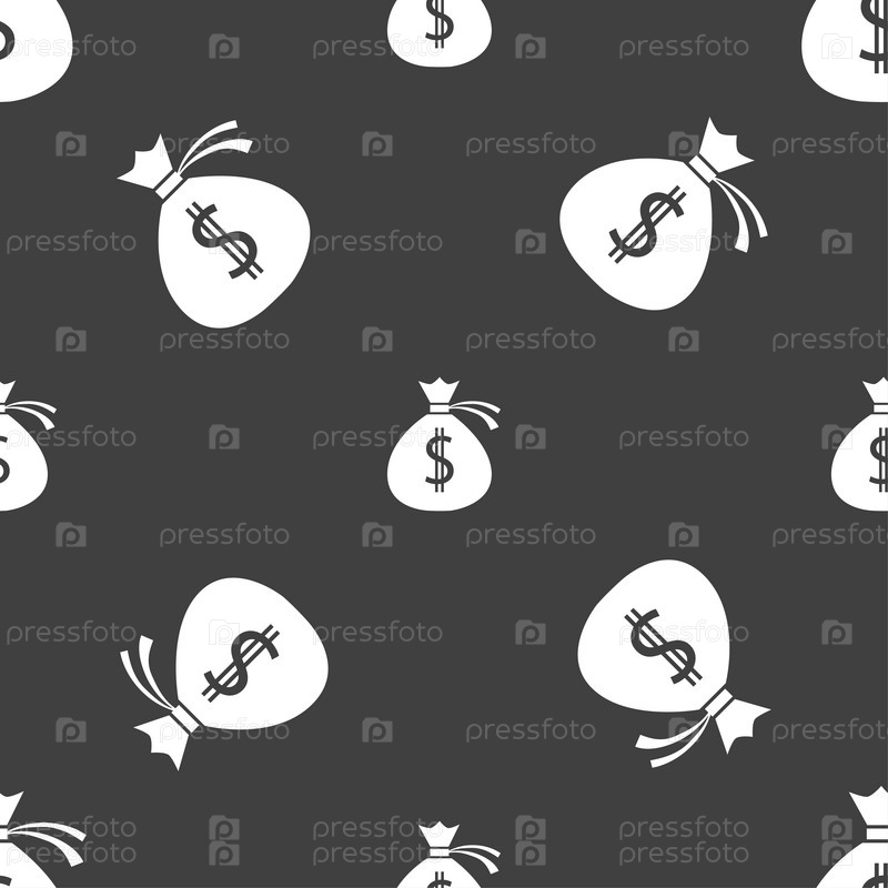 Деньги. Бесшовный узор на сером фоне. Вектор