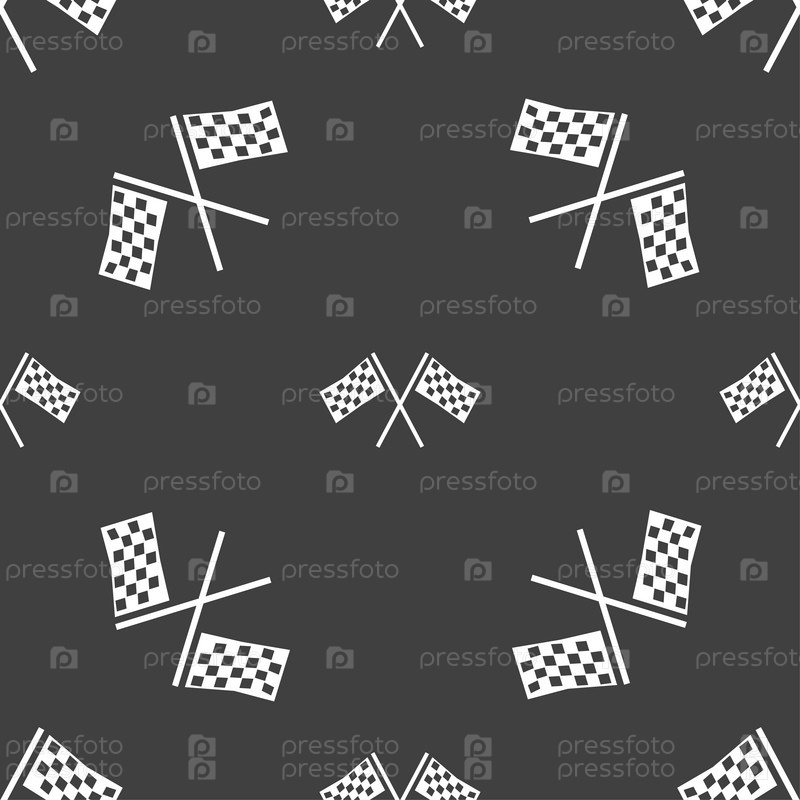 Гонка закончить флаг значок знак. Бесшовный узор на сером фоне. Вектор