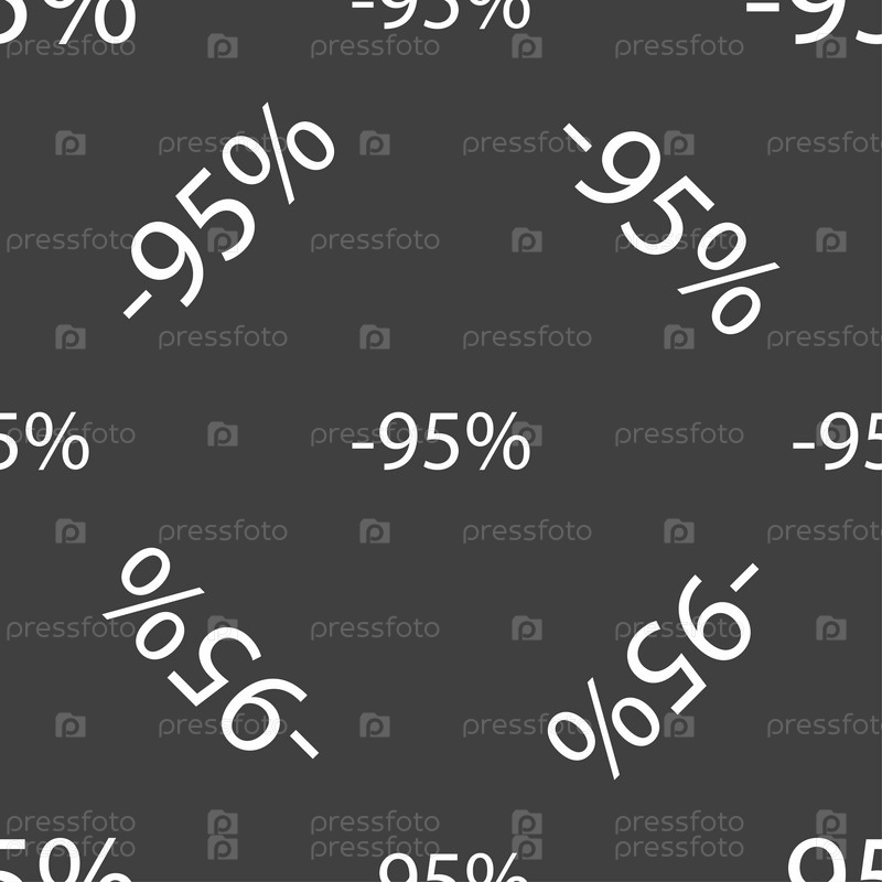 95% скидка знак значок. Продажа символ. Специальное предложение метка. Бесшовный узор на сером фоне. Вектор