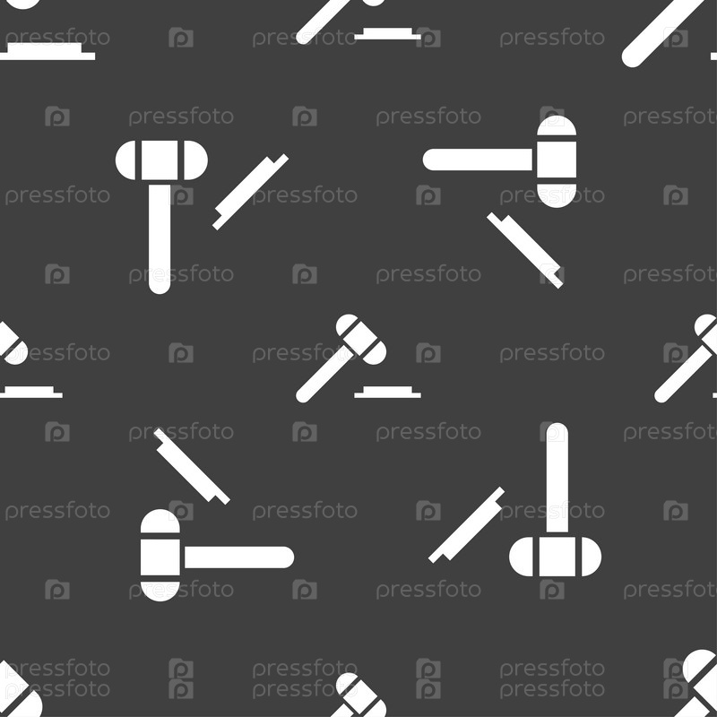 Судья молоток. Бесшовный узор на сером фоне. Вектор