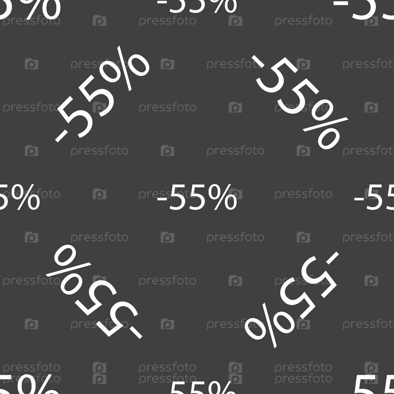 55% скидка знак значок. Продажа символ. Специальное предложение метка. Бесшовный узор на сером фоне. Вектор