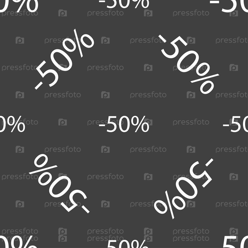 50% скидка знак значок. Продажа символ. Специальное предложение метка. Бесшовный узор на сером фоне. Вектор