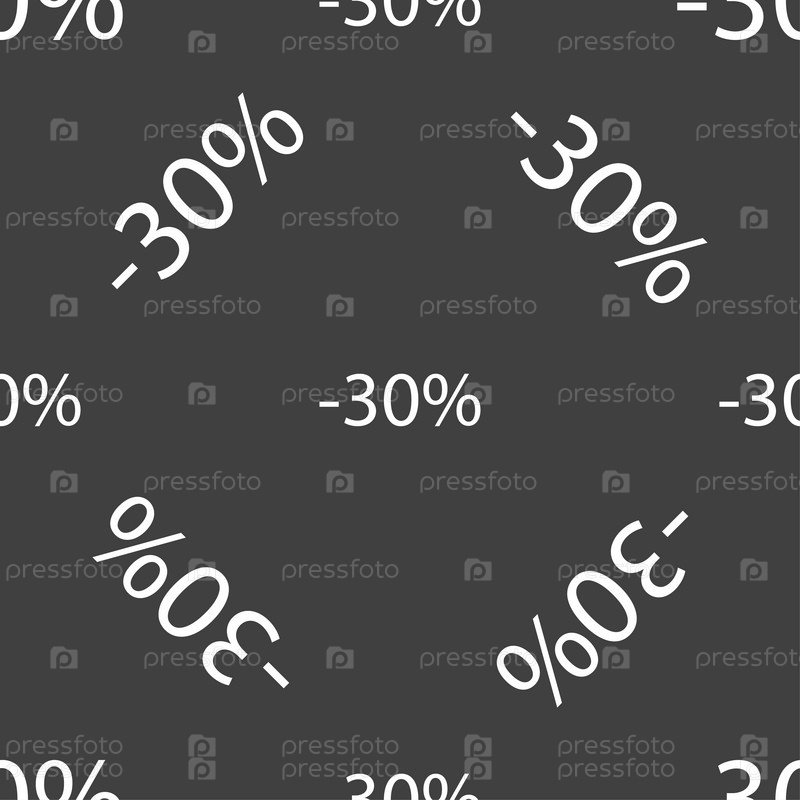 30% скидка знак значок. Продажа символ. Специальное предложение метка. Бесшовный узор на сером фоне. Вектор