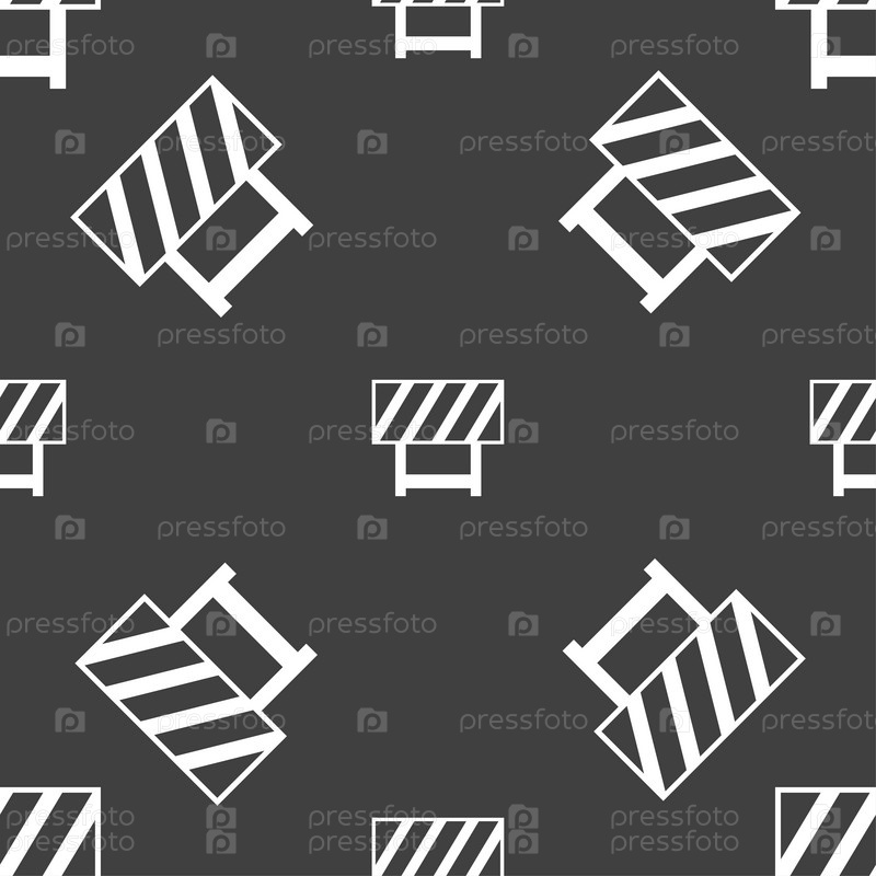 Дорожный знак барьер. Бесшовный узор на сером фоне. Вектор