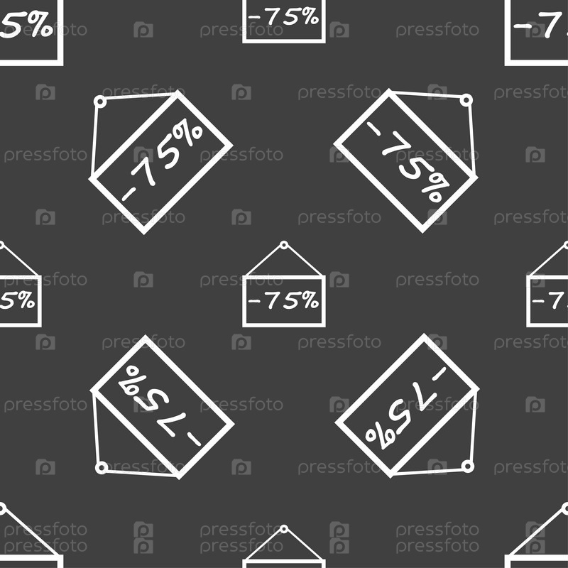 75 скидка. Бесшовный узор на сером фоне. Вектор