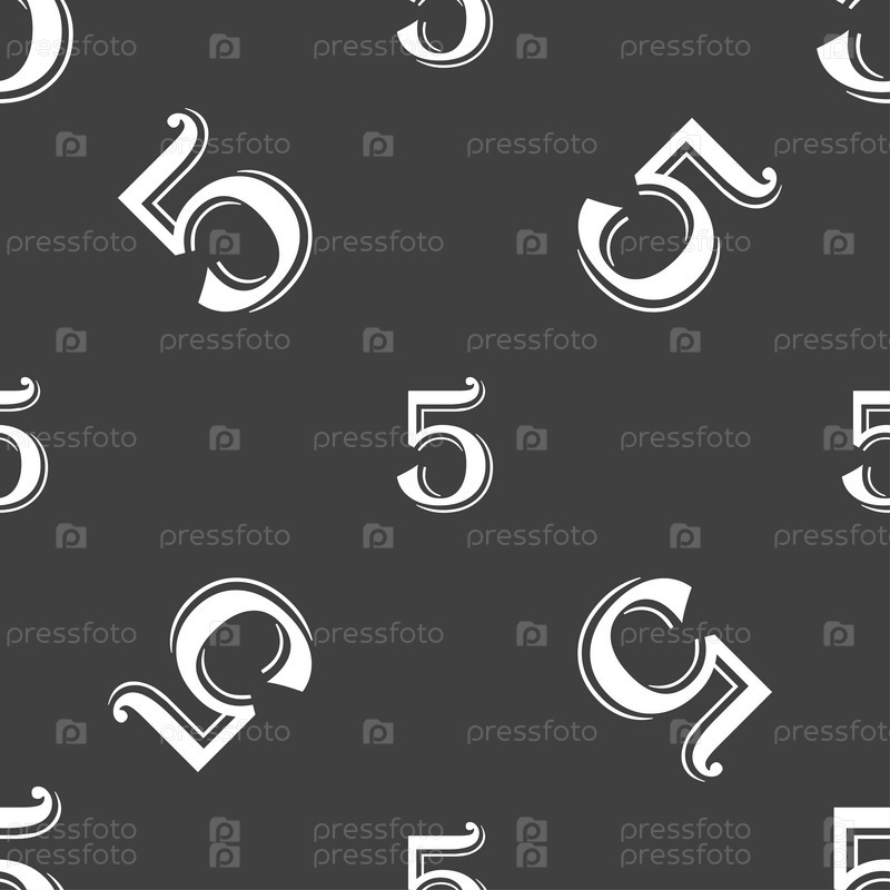 Номер пять значок знак. Бесшовный узор на сером фоне. Вектор